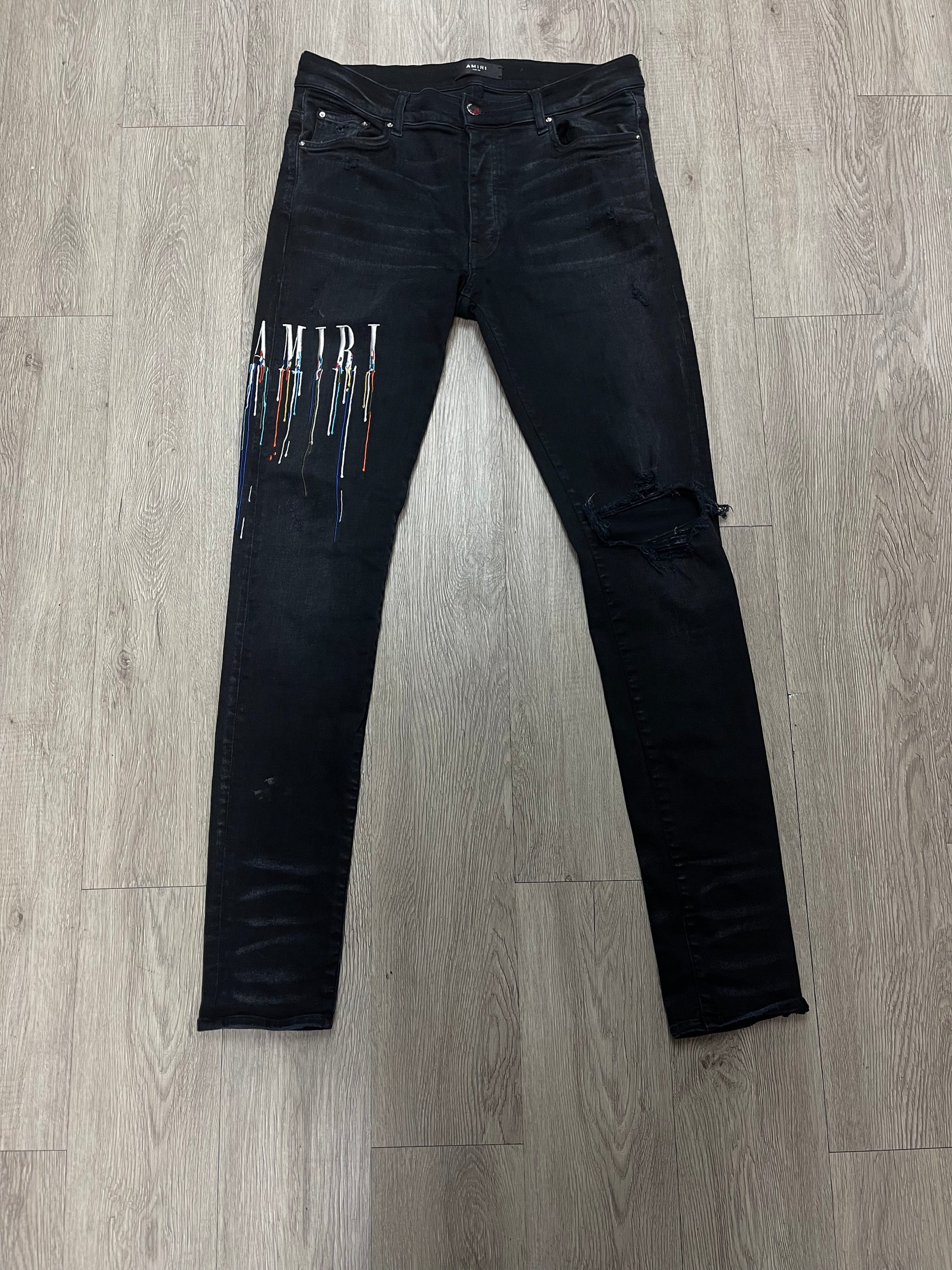 Amiri Black Paint Drip Jeans