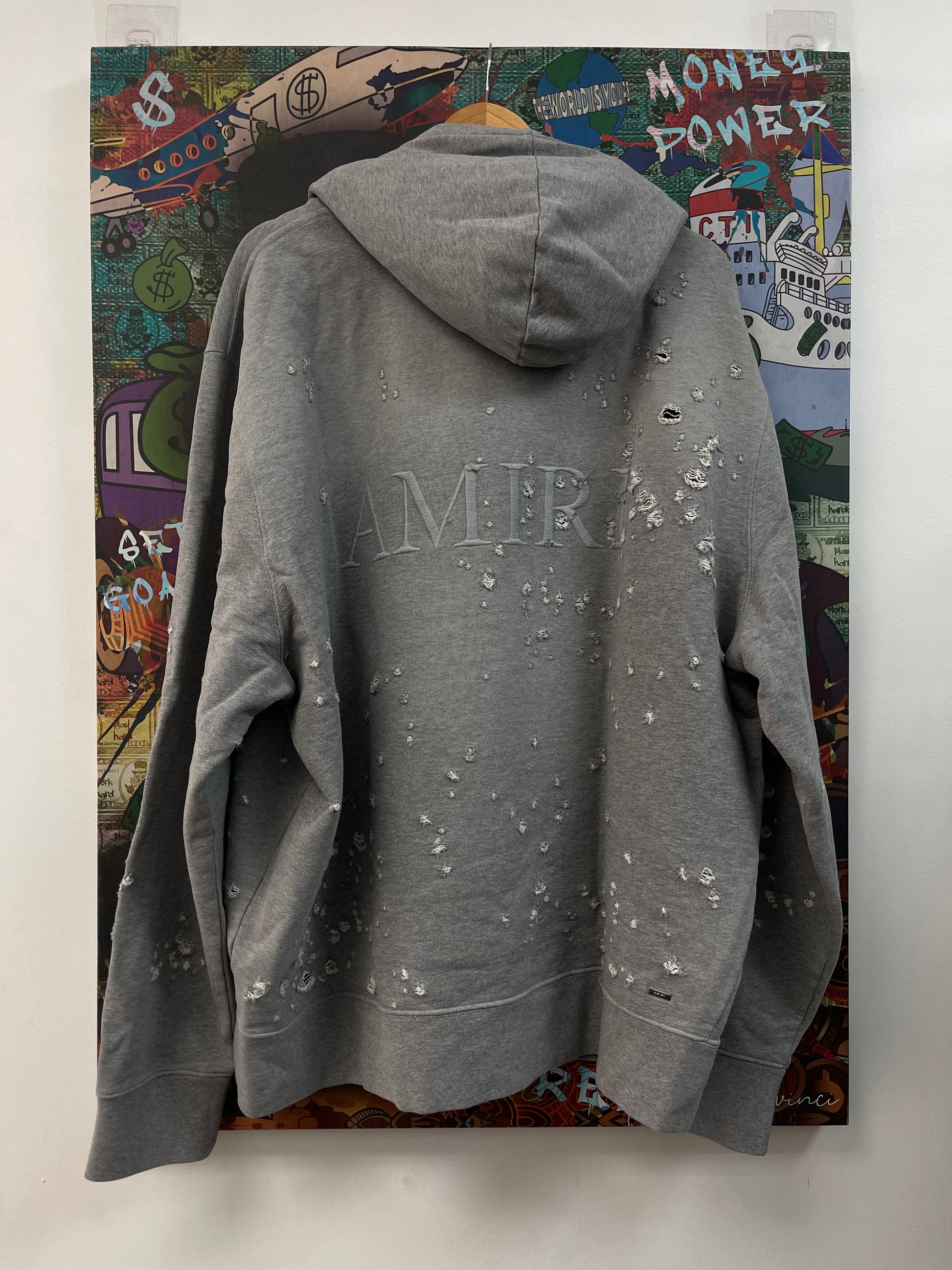 Amiri Shotgun Embroidered Grey Hoodie