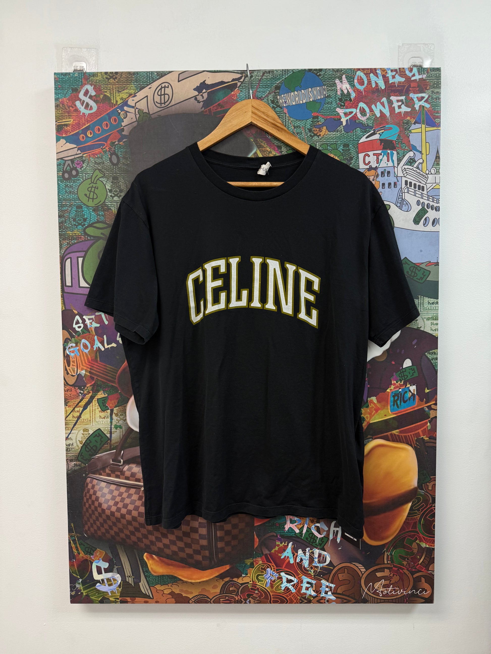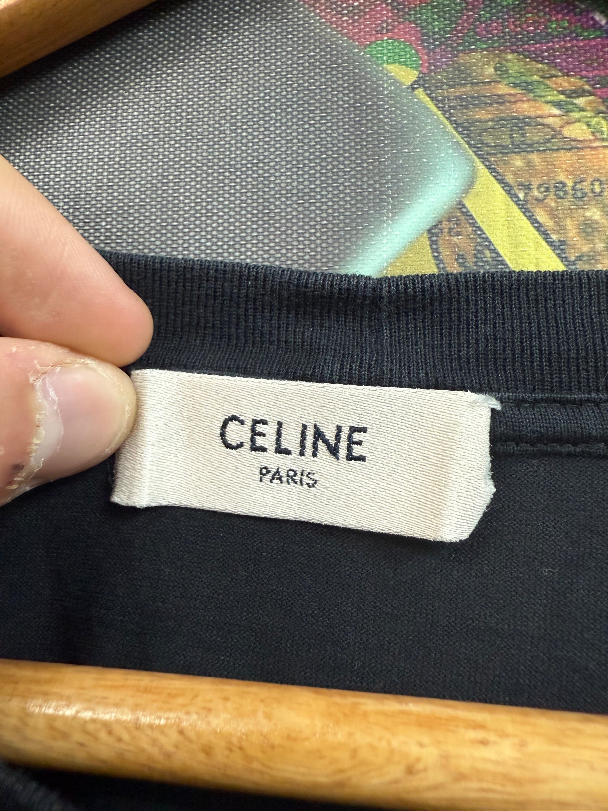 Celine Arc Logo Tee Black Mustard Yellow Used