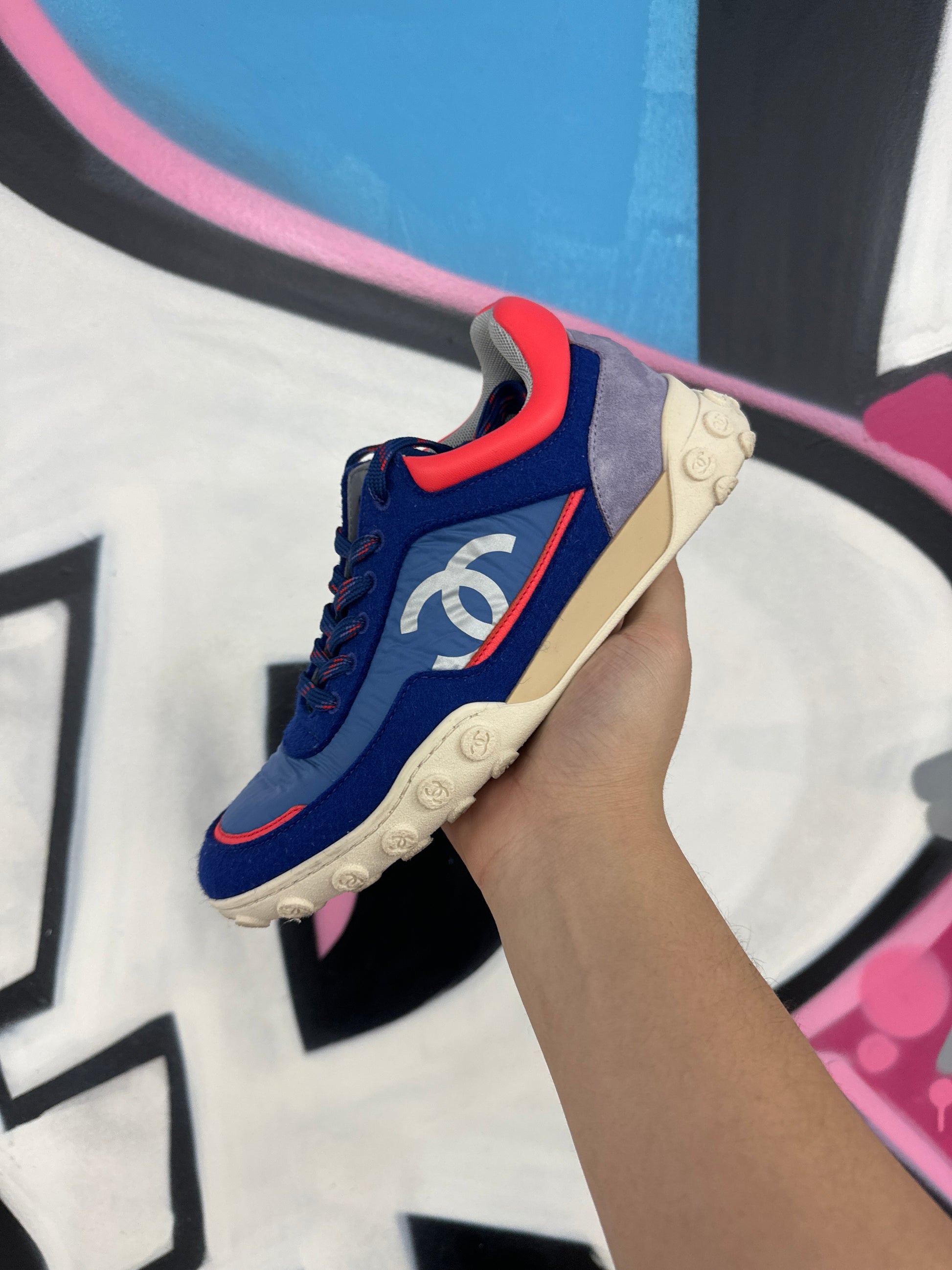 Chanel Blue Coral CC Logo Sneakers
