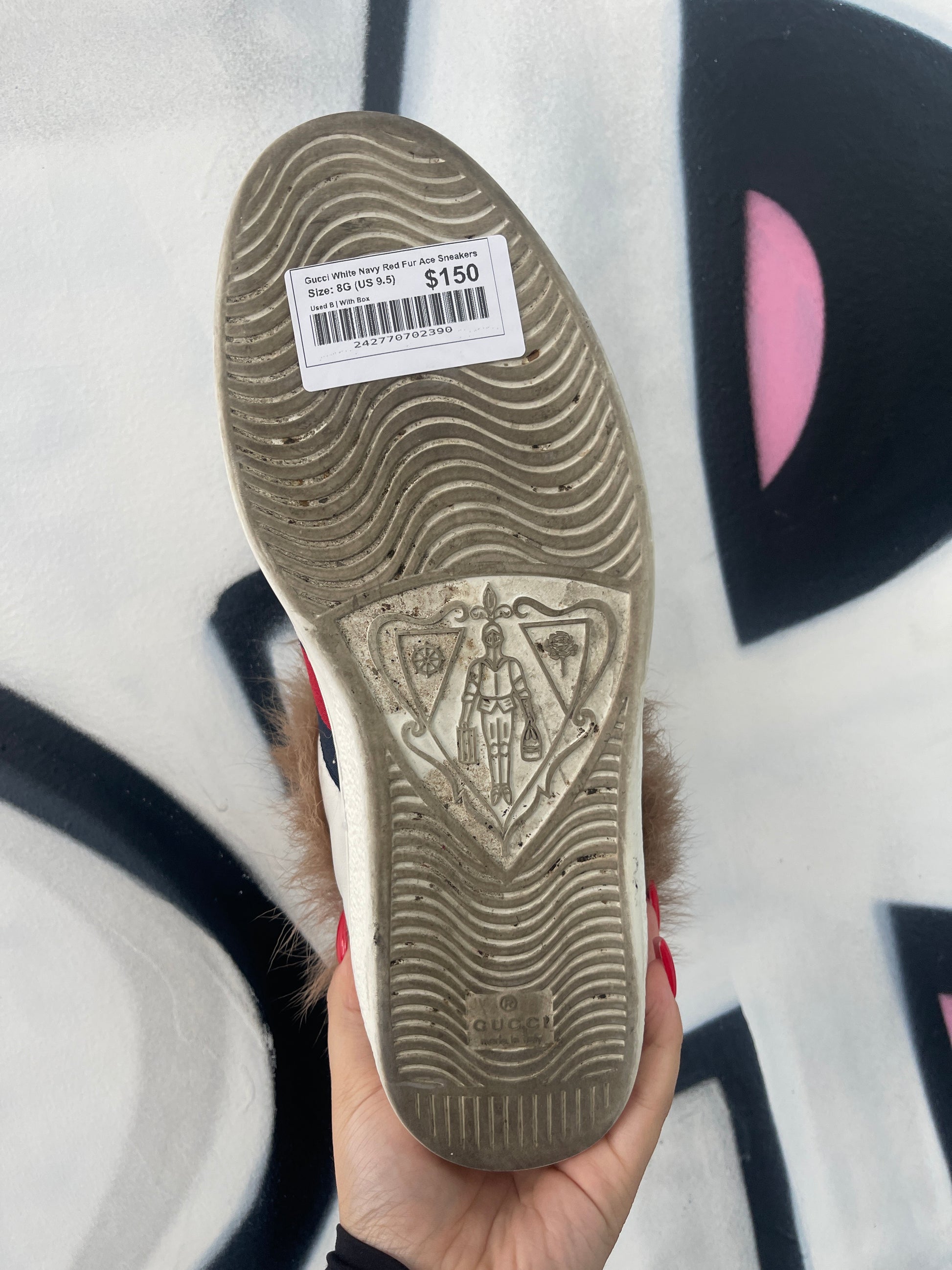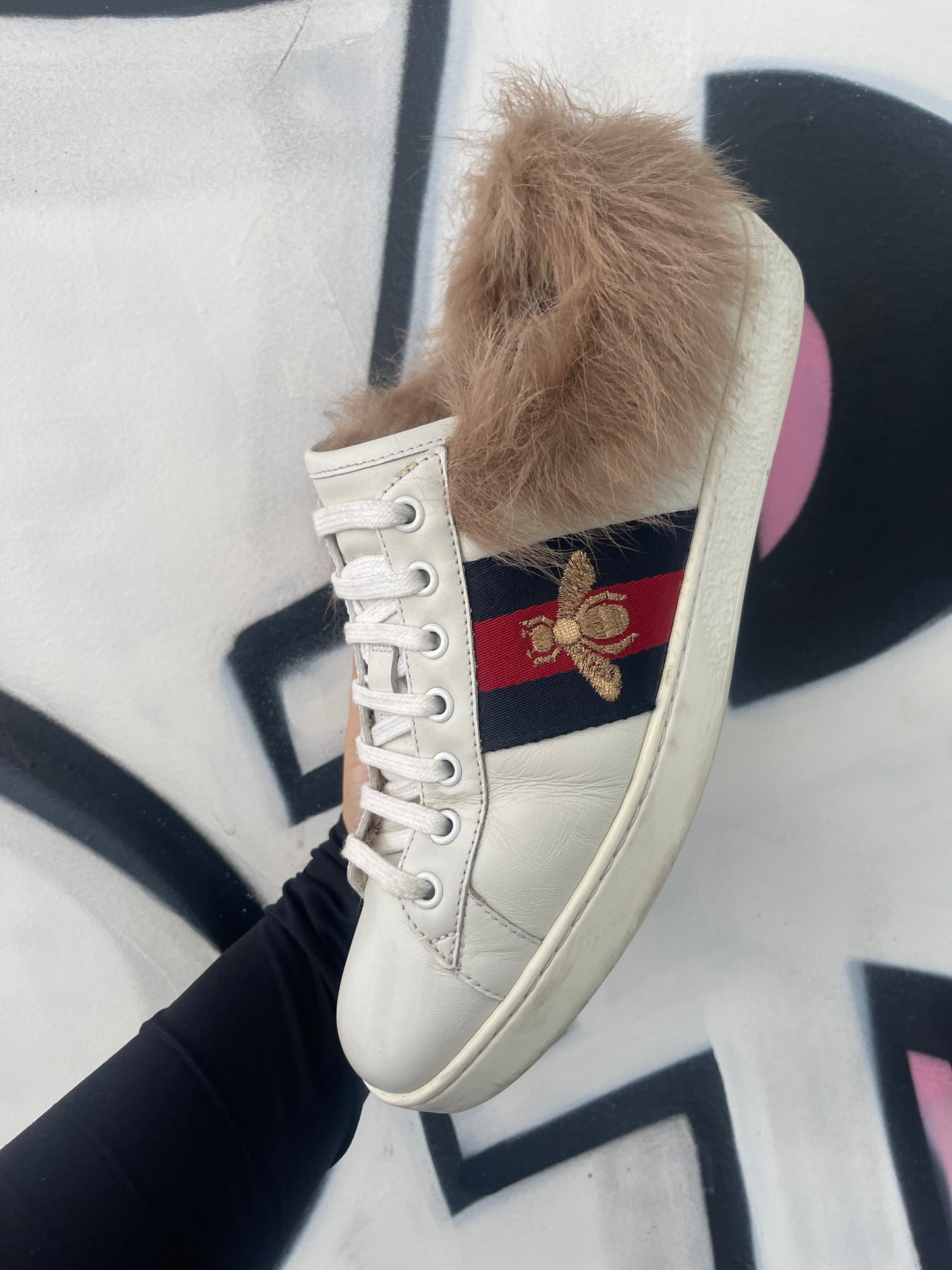 Gucci White Navy Red Fur Ace Sneakers