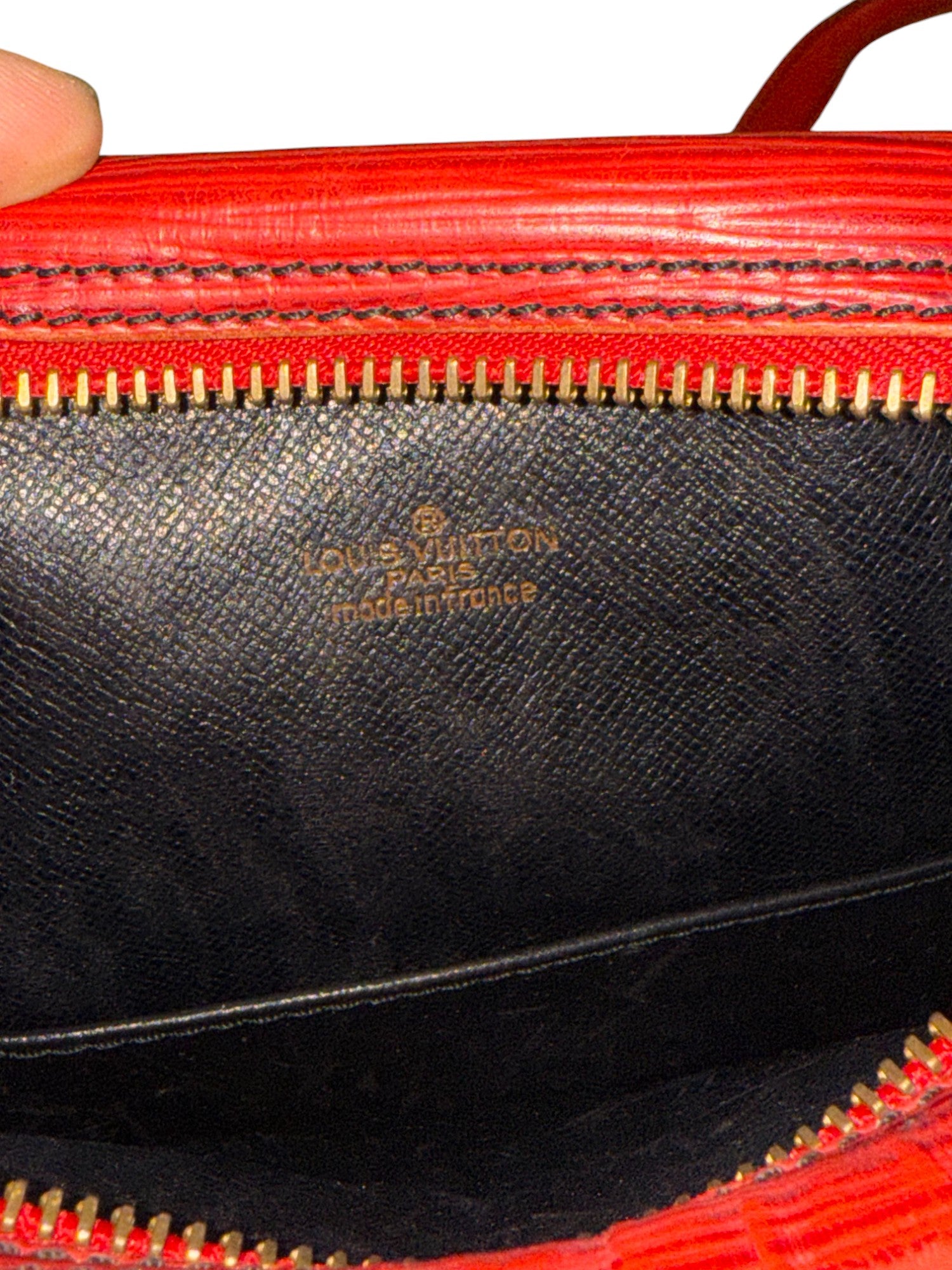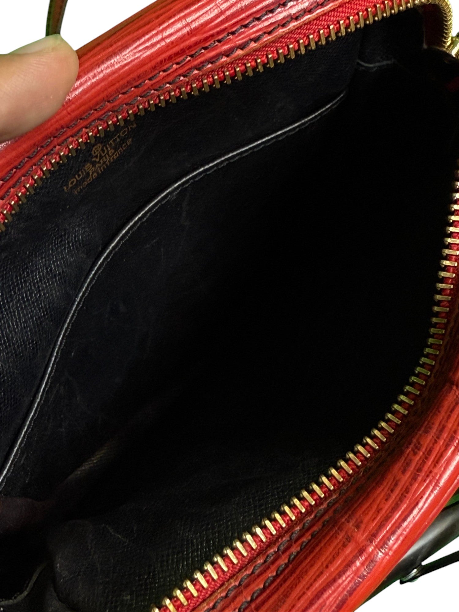 This Louis Vuitton Epi Danube Bag in vibrant red offers a sleek, durable design with its iconic textured leather. Sized one size, this pre-owned piece combines timeless elegance with everyday practicality. Orders are fulfilled promptly for next day shipping. Please feel free to reach out with any questions for expert assistance.