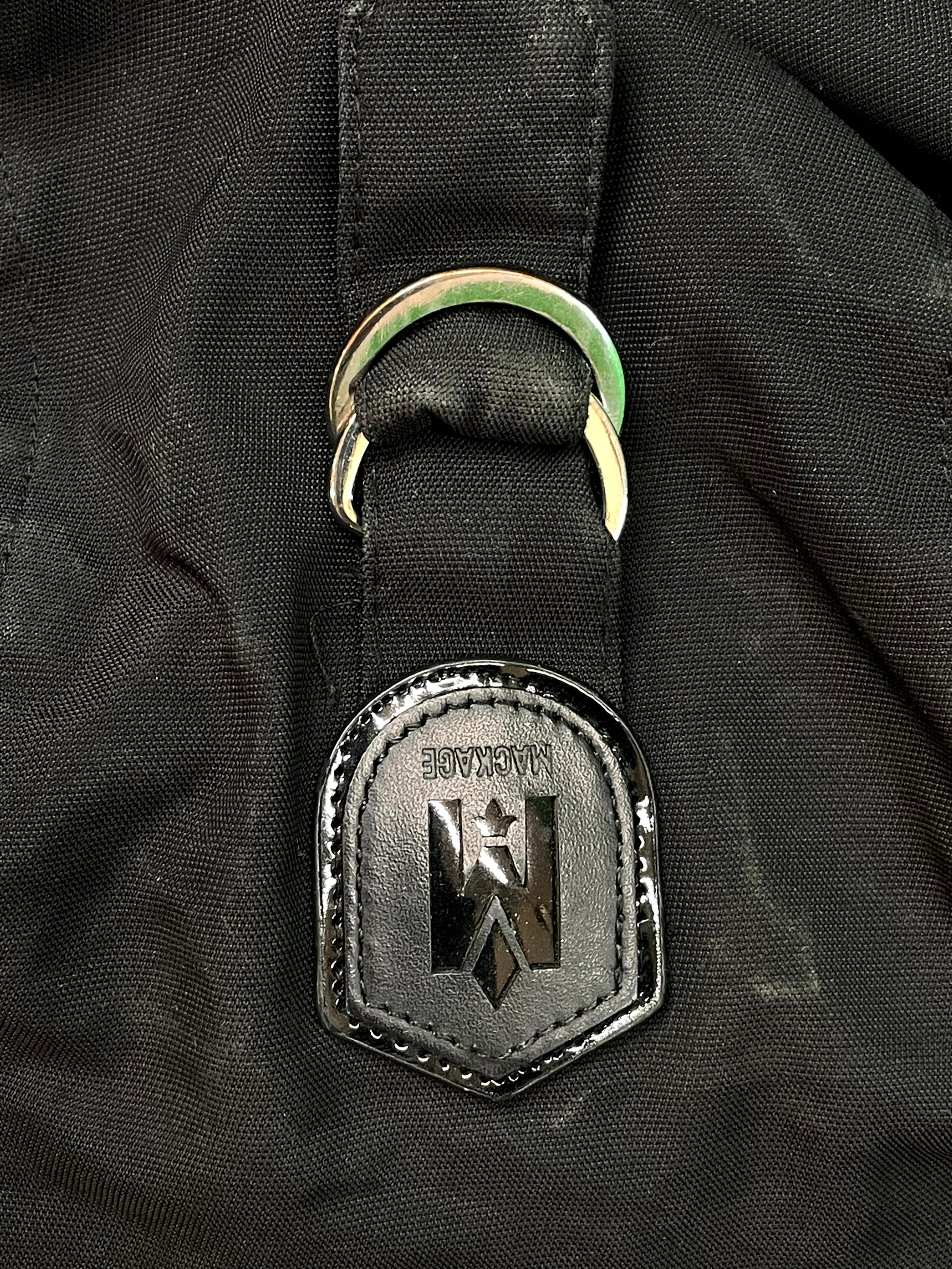 The Mackage Bomber Jacket in Black with Fur trim, size 40 (Medium), combines timeless bomber styling with luxurious details. Crafted for both warmth and style, this used jacket features premium materials that provide comfort and durability. Its sleek black finish and fur accents add a sophisticated edge, making it a versatile choice for cooler weather while maintaining a modern, refined look. Ideal for those who value both function and fashion in outerwear. 943931254224